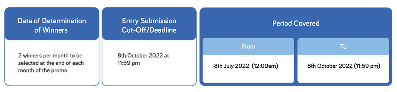 1. Valid entries received from 8th July 2022 through the duration of the promo will be accumulated to generate a list of the highest entries;