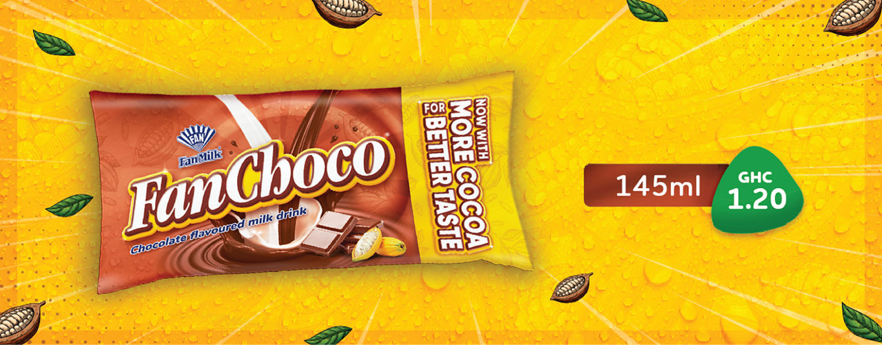 Fabriqué à partir de cacao ghanéen authentique, le FanChoco est la boisson lactée au chocolat glacée préférée du Ghana. Il a les bienfaits et les avantages du cacao et se présente dans un emballage de 145 ml. Son prix est de 1,2 GHC et sa durée de conservation est de 6 mois.