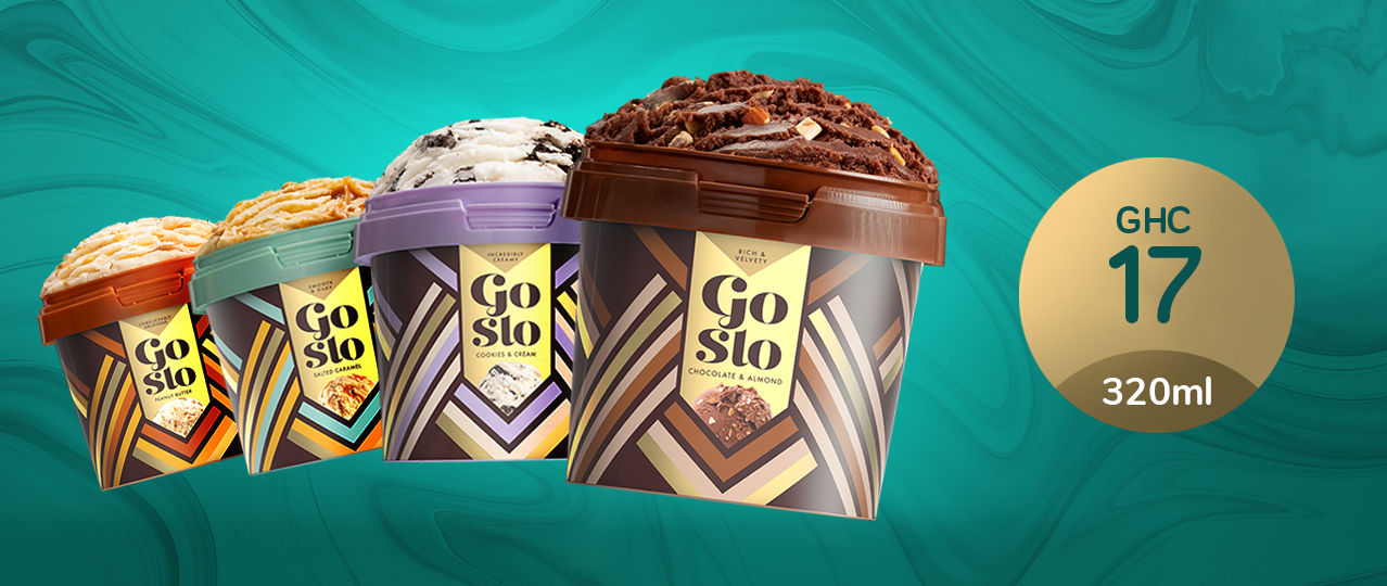 Nous pensons que la vie trépidante d’aujourd’hui est malsaine et nous empêche de vraiment profiter de la vie. C'est pourquoi Go Slo s'engage à aider à créer une société plus saine sur le plan émotionnel, à commencer par chaque boule de crème glacée. GoSlo est disponible en quatre variantes intéressantes; Biscuits et crème, chocolat amande, beurre d'arachide et caramel salé. Il est disponible en formats de 320 ml et 460 ml. Taste Life Slo avec @gosloghana sur toutes les plateformes sociales.