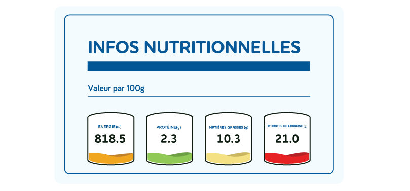 Extrait sec dégraissé de lait, Sucre, matières grasses végétales, émulsifiant/stabilisant (E401,E407,E410,E412,E466,E471), colorant et arôme (E102,E110)