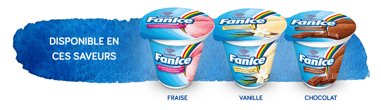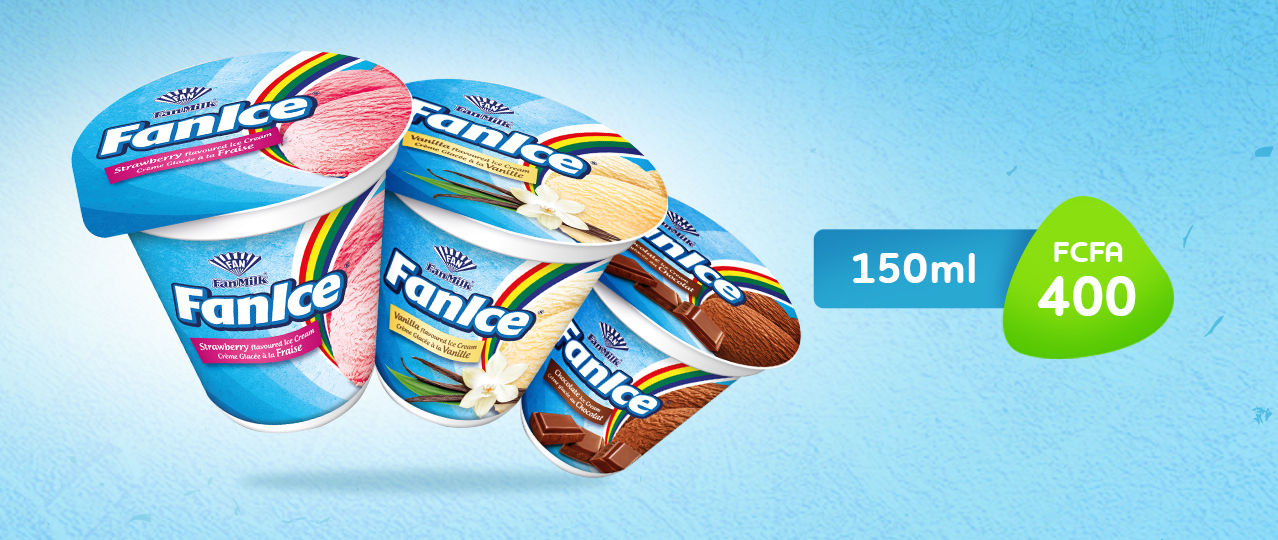Le format Fanice 150ml est disponible en trois parfums: vanilla, chocolat, fraise. C’est délicieux crèmeux et vendu au prix de 400 FCFA. Elle a une durée de conservation de 6 mois.