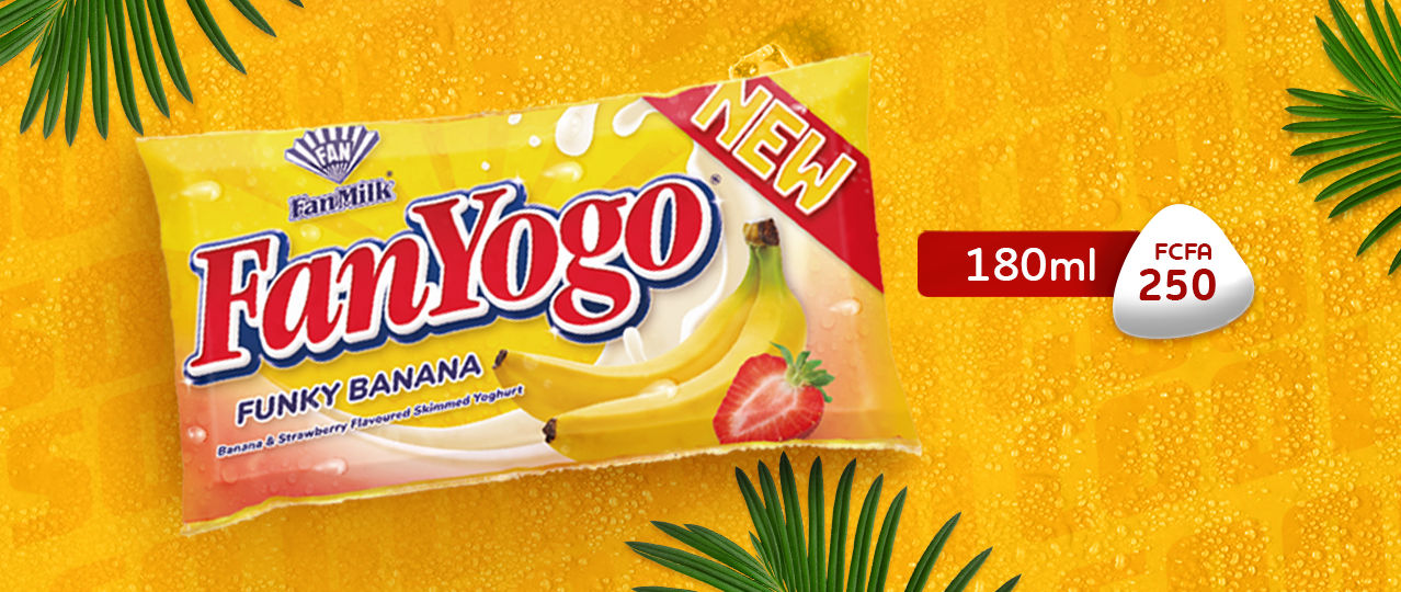 Fanyogo Funky Banana vient dans d’un mélange unique de goût de bananes et fraises. Il est disponible dans une plus grande taille de 180ml et au prix de 250 FCFA. Il a une durée de vie de 6mois.