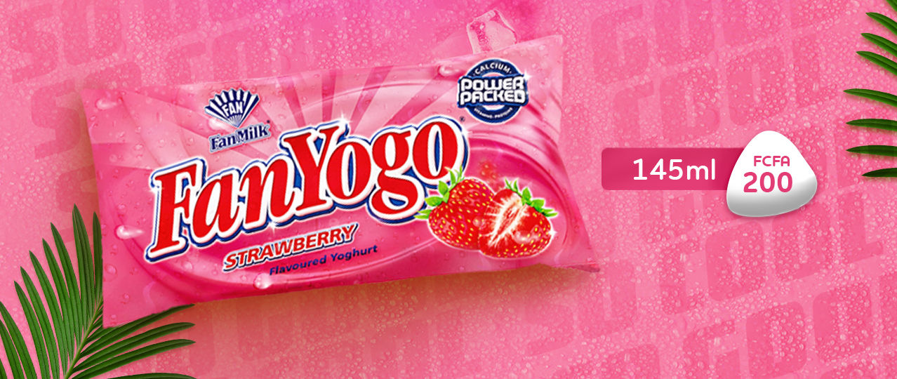 Fanyogo Fraise est la première saveur lancée sur le marché Togolais. C’est un yaourt congelé avec un goût unique de fraise. Il est de 140 ml au prix de 200 FCFA. Il a une durée de vie de 6mois et peut également être utilisé sous différentes formes telles que smoothies.
