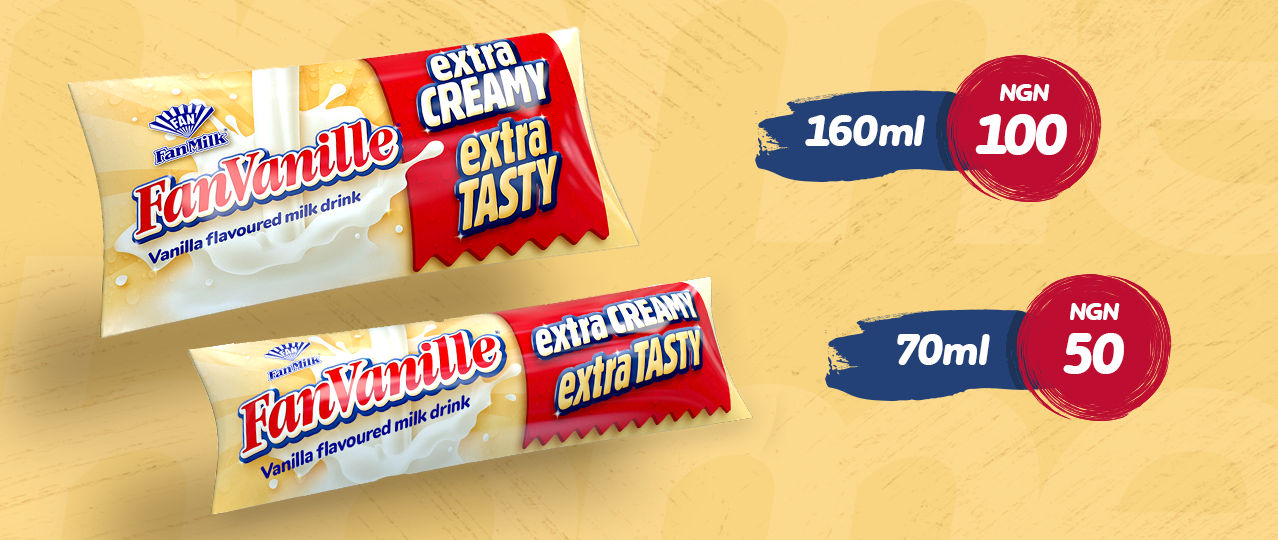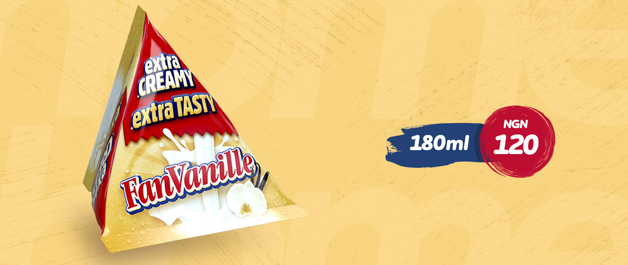 FanVanille is Nigeria’s No 1 Frozen flavored milk brand. Its unique milk and vanilla flavour combination makes for a refreshing on-the-go snack. FanVanille comes in 70ml at N50 and 160ml at N100 pouches as well as a 180ml Tetrapak at N120. Follow @FanVanilleng on all Social media platforms for cool content and exciting updates.