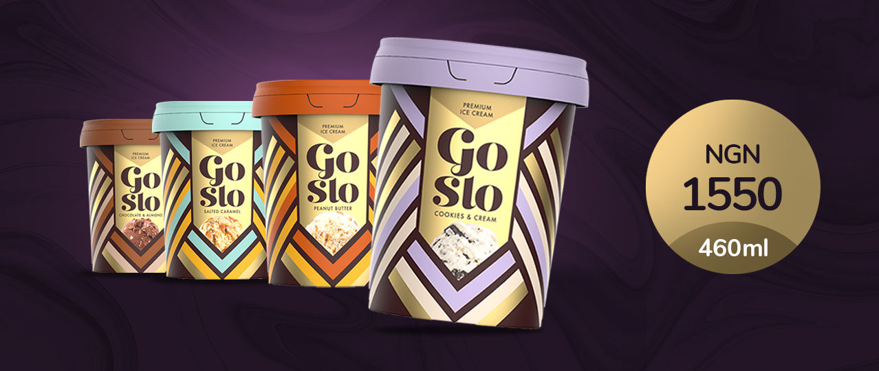 GoSlo is Nigeria’s first locally produced premium Ice-cream brand. It is available in 4 exciting flavours: Cookies and Cream, Chocolate almond, Peanut butter and Salted caramel. GoSlo comes in 460ml and has a 6-month shelf life.