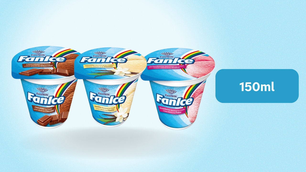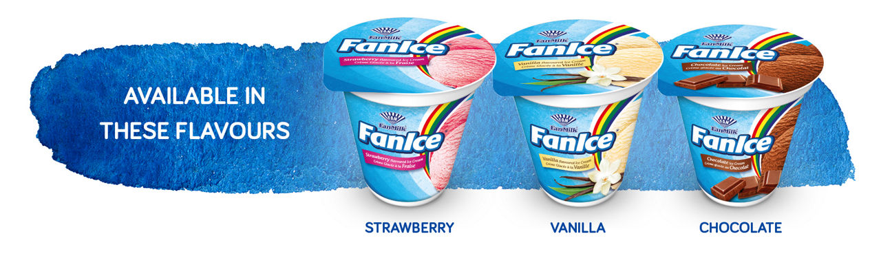 FanIce is a delicious, smooth and creamy ice cream. It is available in vanilla, strawberry and chocolate flavours. It comes in a 150ml cup has a 6-month shelf life.