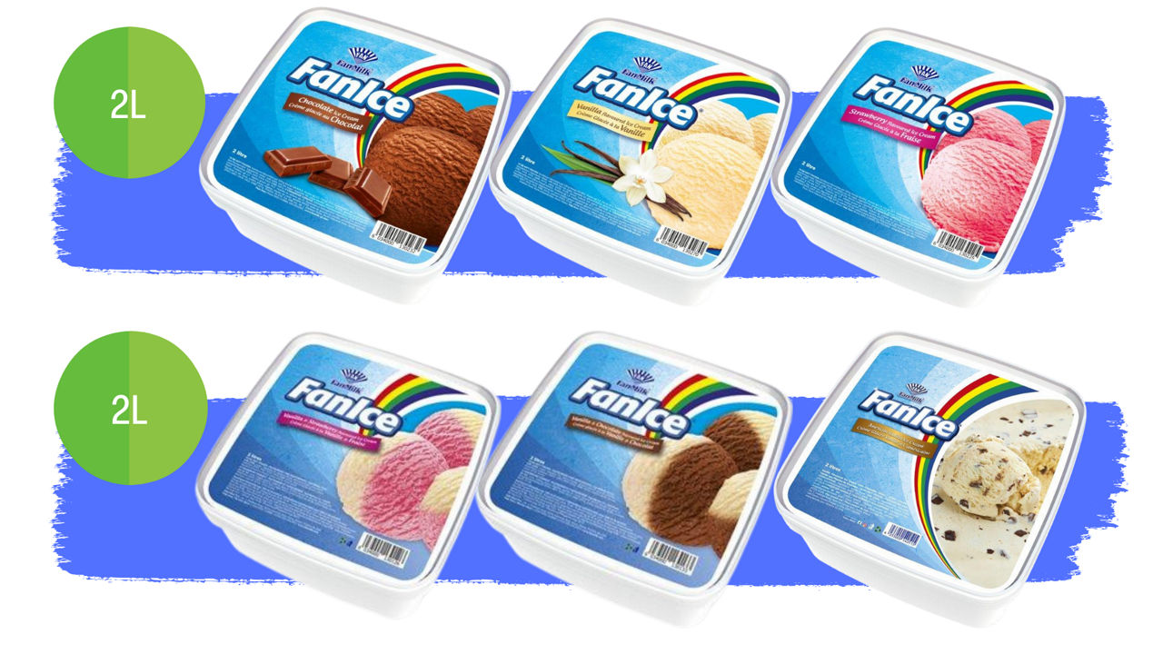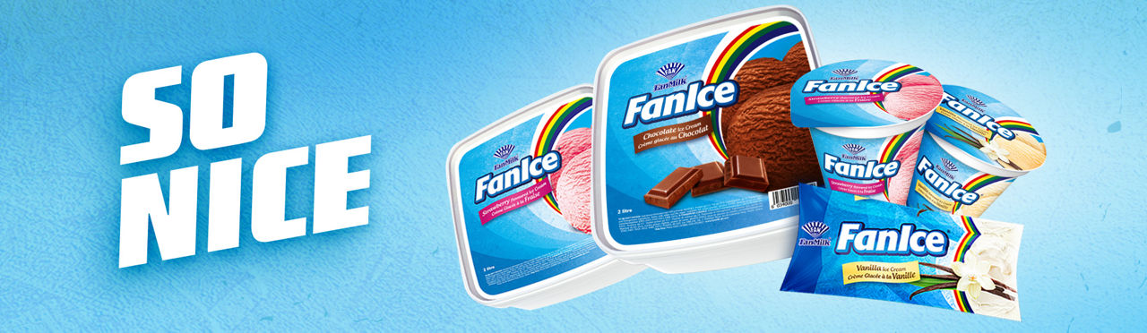 FanIce is a delicious, smooth and creamy ice cream. It is available in a unique vanilla, strawberry and chocolate flavour. It has a 6-month shelf life.